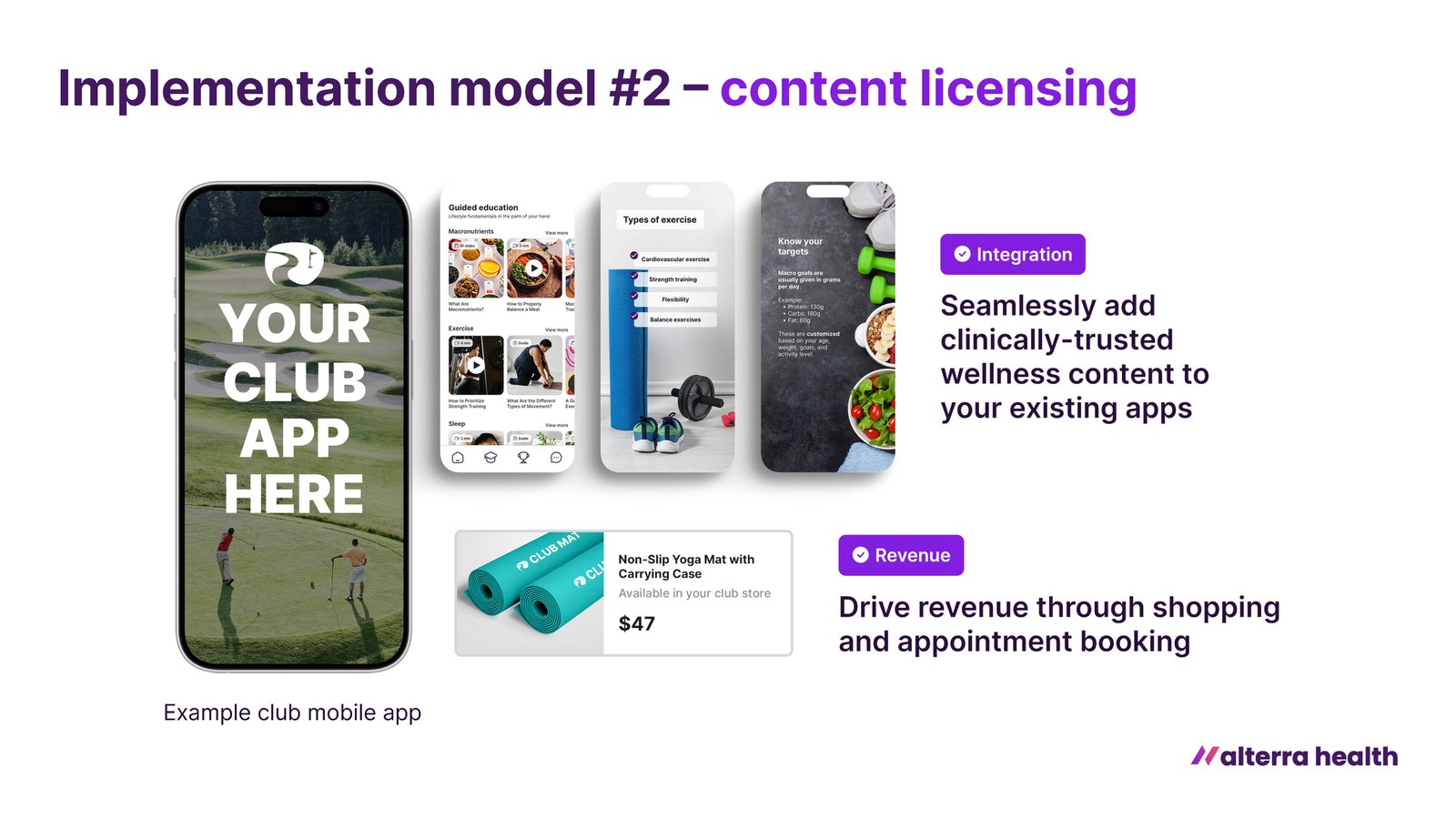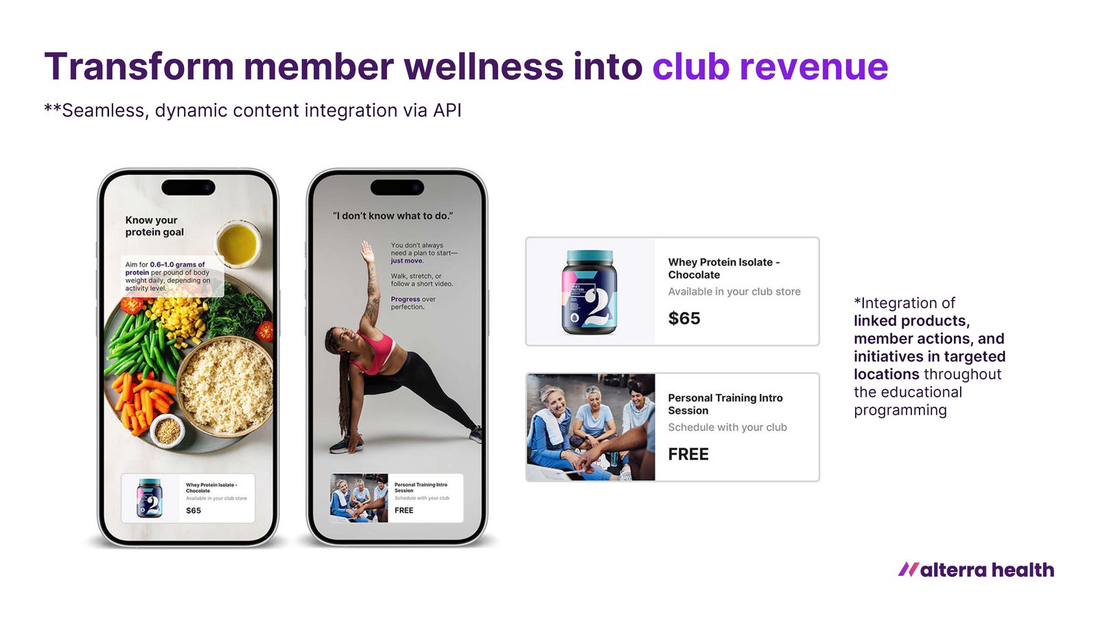 By integrating a lifestyle platform like Alterra Health, you offer that bridge – support that extends the value of club life into daily routines. It’s not a workout library. It’s not a meal plan subscription. It’s the how behind the habits your team inspires.